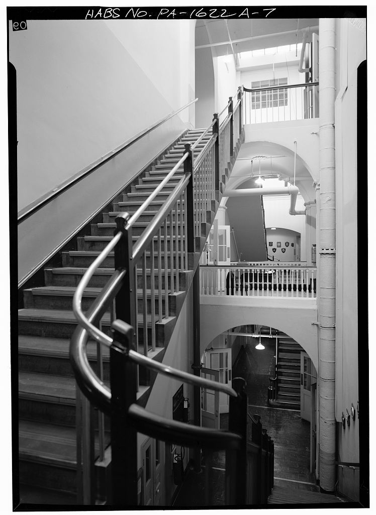 MAIN STAIRWAY, PRINCIPAL STORY, LOOKING NORTH - U. S. Naval Asylum, Biddle Hall, Gray's Ferry Avenue, Philadelphia, Philadelphia County, PA. Ca. 1964, Library of Congress Prints and Photographs Division Washington, D.C. 20540 USA http://hdl.loc.gov/loc.pnp/pp.print