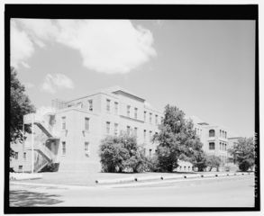 Building S, in southeast corner of the site; view from the southeast. Ca. 1993 Image from Library of Congress Prints and Photographs Division Washington, D.C. 20540 USA http://hdl.loc.gov/loc.pnp/pp.print