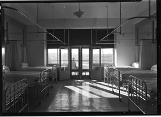 | current | 11:46, 25 December 2021 | 1,024 × 744 (225 KB) | M-Explorer (talk | contribs) | Typical six-bed ward, to balcony, Ca. 1940, From: Gottscho-Schleisner Collection, Library of Congress, Prints and Photographs Division. Category:Triboro Hospital for Tuberculosis Images |