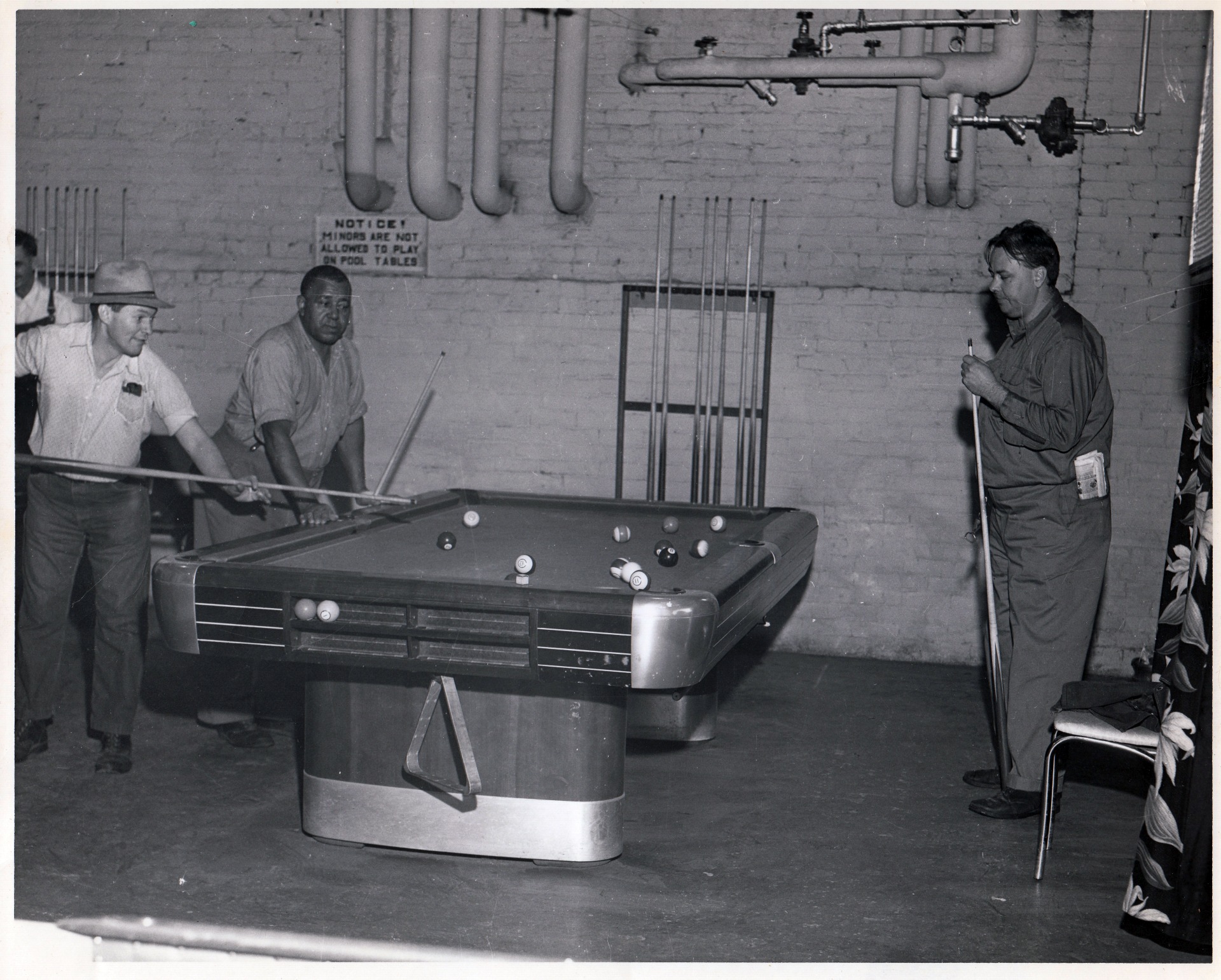 Patients playing pool in the old recreation hall, 1952.
