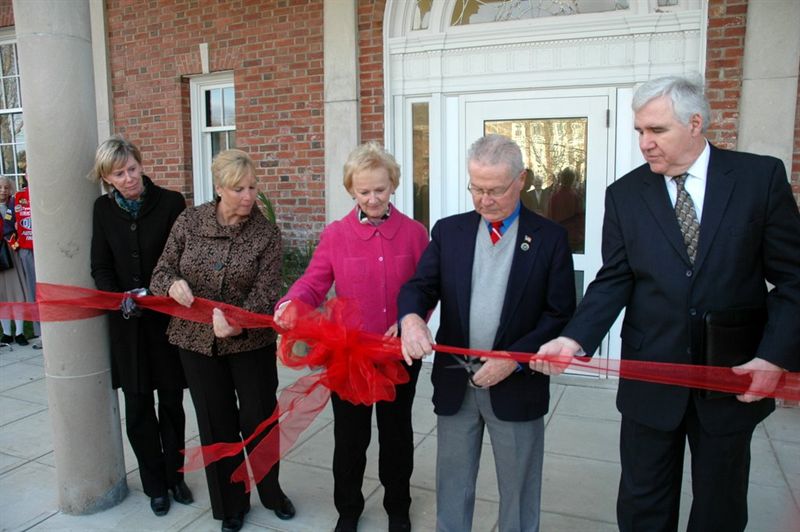 First Selectman Joe Borst, second from right, cuts a ceremonial ribbon at dedication ceremonies held on Saturday, November 21, 2009 at the Newtown Municipal Center at Fairfield Hills. Also pictured, from left, Director of Economic and Community Development Elizabeth Stocker, State Representative DebraLee Hovey, First Selectman-elect Pat Llodra, and Selectman Herb Rosenthal. http://newtownbee.com/News/2009-12-01__16-12-13/Town+Dedicates+Newtown+Municipal+Center+At+Fairfield+Hills