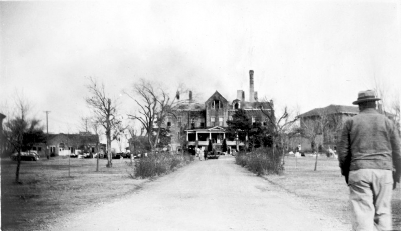 View of main building, ca. 1938. Credit- Kansas Historical Society
