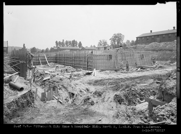 Pittsburgh City Home and Hospital at Mayview, Building North 2, looking southwest from northeast corner. June 16, 1937. http://images.library.pitt.edu/cgi-bin/i/image/image-idx?sid=33fdaa8077488b50aeb7e2d0a23fe198&q1=mayview&rgn1=cp_all&op2=And&q2=&rgn2=cp_all&type=boolean&g=imls&med=1&view=thumbnail&c=cp
