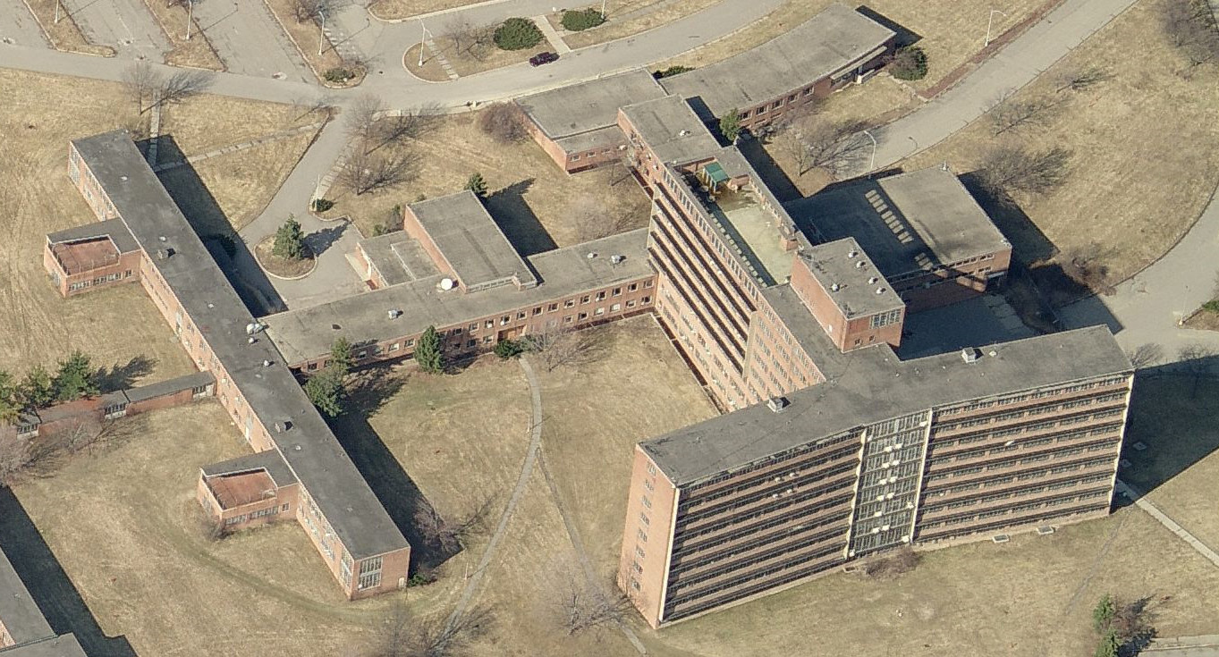 Aerial image of Northville State Hospital, circa 2009. Image credit: Bing Maps.