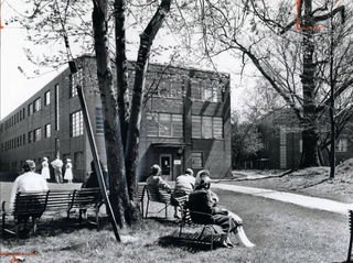 Patients outside the Summit County Receiving Hospital, Cuyahoga Falls, 1960.