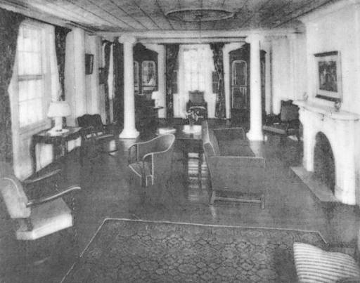 This living room was in the Women's Building of Gundry Sanitarium at Relay. Date: 1930s