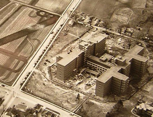 A 1905s aerial of new buildings under construction at the hospital.