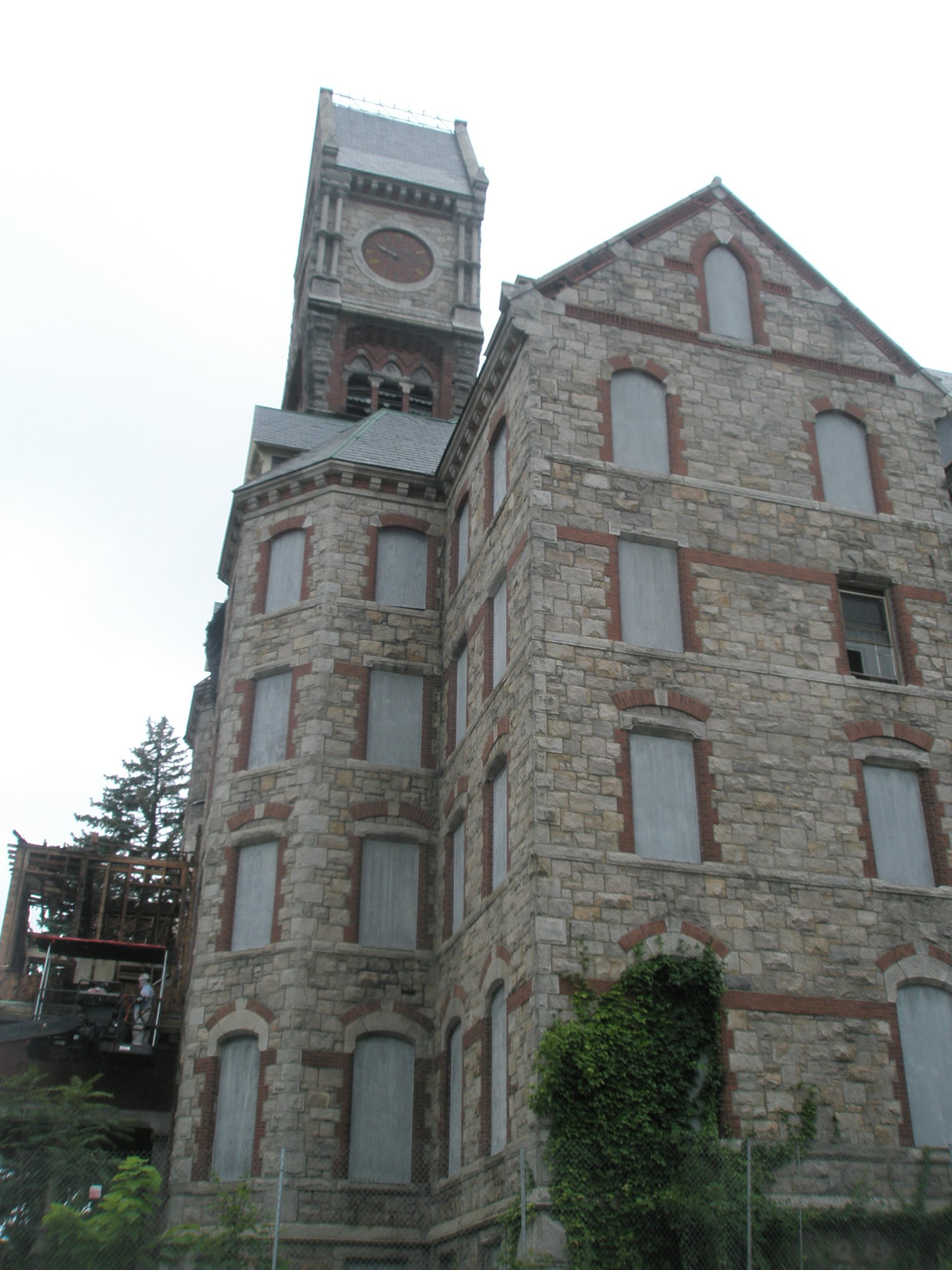 The WSH administration building as of March 2011. Image credit: http://www.facebook.com/pages/Save-Worcester-State-Hospital-Clock-Tower