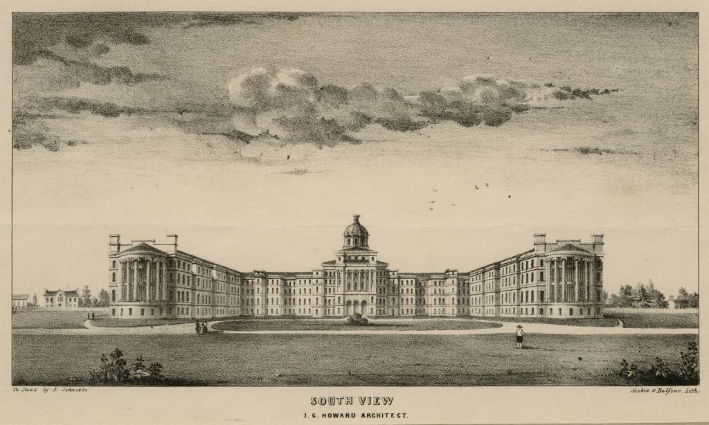 Architect's 1849 lithograph of the asylum.