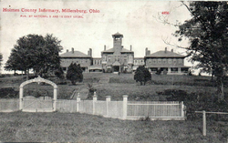 In January 1896, a new modern building was completed at a cost of $28,000. It took 250,000 to 300,000 bricks to build the Infirmary. The bricks were all made at the yard on the Infirmary farm. The barn, the cave, and paving with bricks around the Infirmary was done in 1897. Total cost of the Infirmary and barn was $44,000. On July 9, 1919, the name was changed to the Holmes County Home.